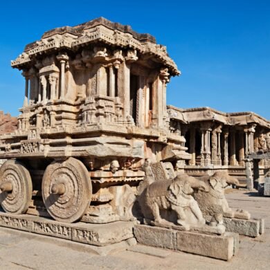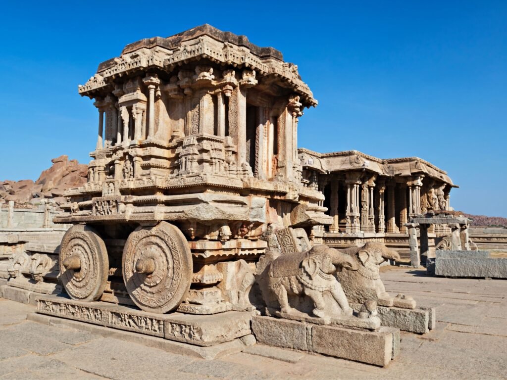 The Stone Chariot of Hampi is one of three famous chariots in India, the other two being in Konark and Mahabalipuram.