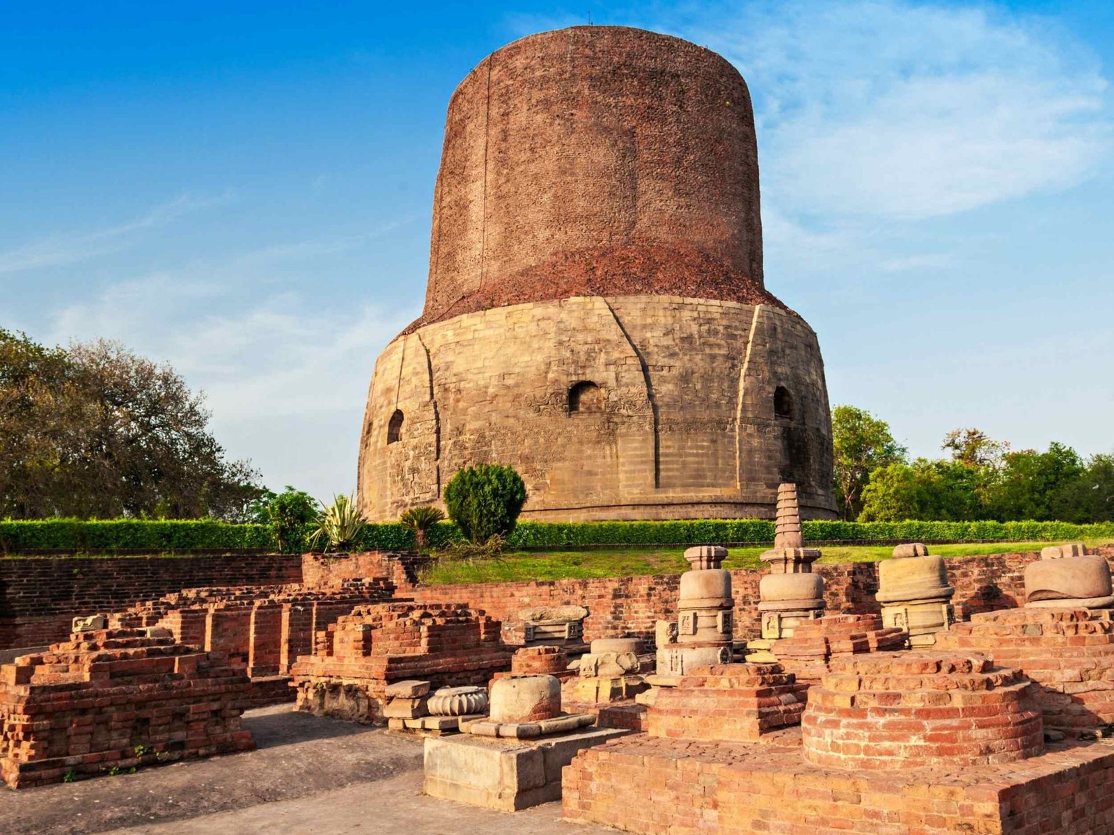 Just a few miles away from Varanasi, Sarnath is located which is the revered place for Buddhists, Hindus, and Jains. Lord Buddha delivered his first sermons to his five disciples in Sarnath in 528 B.C., after attaining enlightenment in Bodh Gaya. Sarnath is one of the key sites on the Buddhist circuit along with Bodhgaya, Kushinagar, Vaishali, and Lumbini.